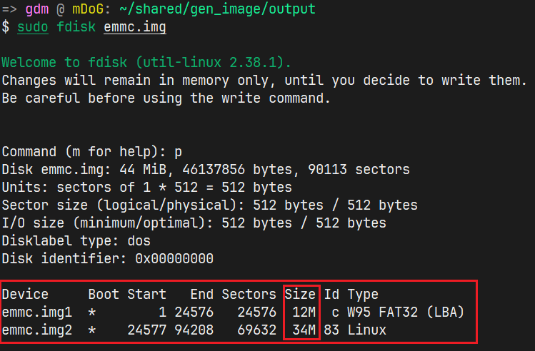 我们可以使用 fdisk 工具验证一下生成的 emmc.img: